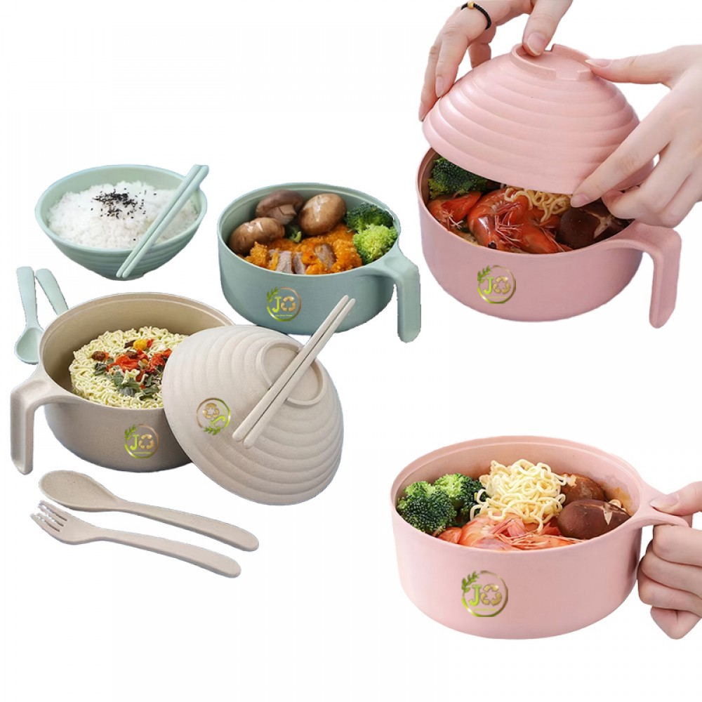 This noodle bowl is made from natural wheat straw and food-grade PP, offering a lightweight and durable option for everyday meals. Designed with a deeper bowl shape and an integrated handle, it provides comfortable handling while enjoying noodles, soups, or mixed dishes. The matching lid helps keep food covered between uses. Suitable for daily use at home, in the office, or in shared dining spaces. Custom logo available.